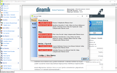 UYAP (Ulusal Yargı Ağı Projesi) uyarınca icra takiplerinin, elektronik ortamda hazırlanarak icra dairelerine verilmesi zorunlu hale geldi. UYAP'a tam uyumlu olan programımızda 01 Örnekten 44 Örneğe kadar ilamlı ve ilamsız her türlü icra takibini hazırlayabilirsiniz. Ayrıca programımız 300'e yakın hazır dilekçe, örnek, talimat ve müzekkereler ile desteklenmiş olup kullanımı oldukça kolaydır. Büronuzdaki dava dosyalarınızı istediğiniz şekilde dosyalayıp; hesap durumlarını, davalarla ilgili yapılması gerekenleri ve duruşma günlerini sizlere hatırlatan DAVA TAKİP bölümü mevcuttur.